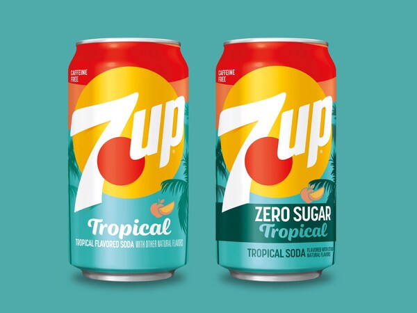 - 7UP Tropical is a cool, crisp combination of 7UP, the #2 lemon-lime carbonated soft drink3, blended with tropical flavors of mango and peach and bursting with summery vibes. Launching as a permanent flavor in February, the regular and zero sugar versions will be available nationwide in 12 oz 12-packs.